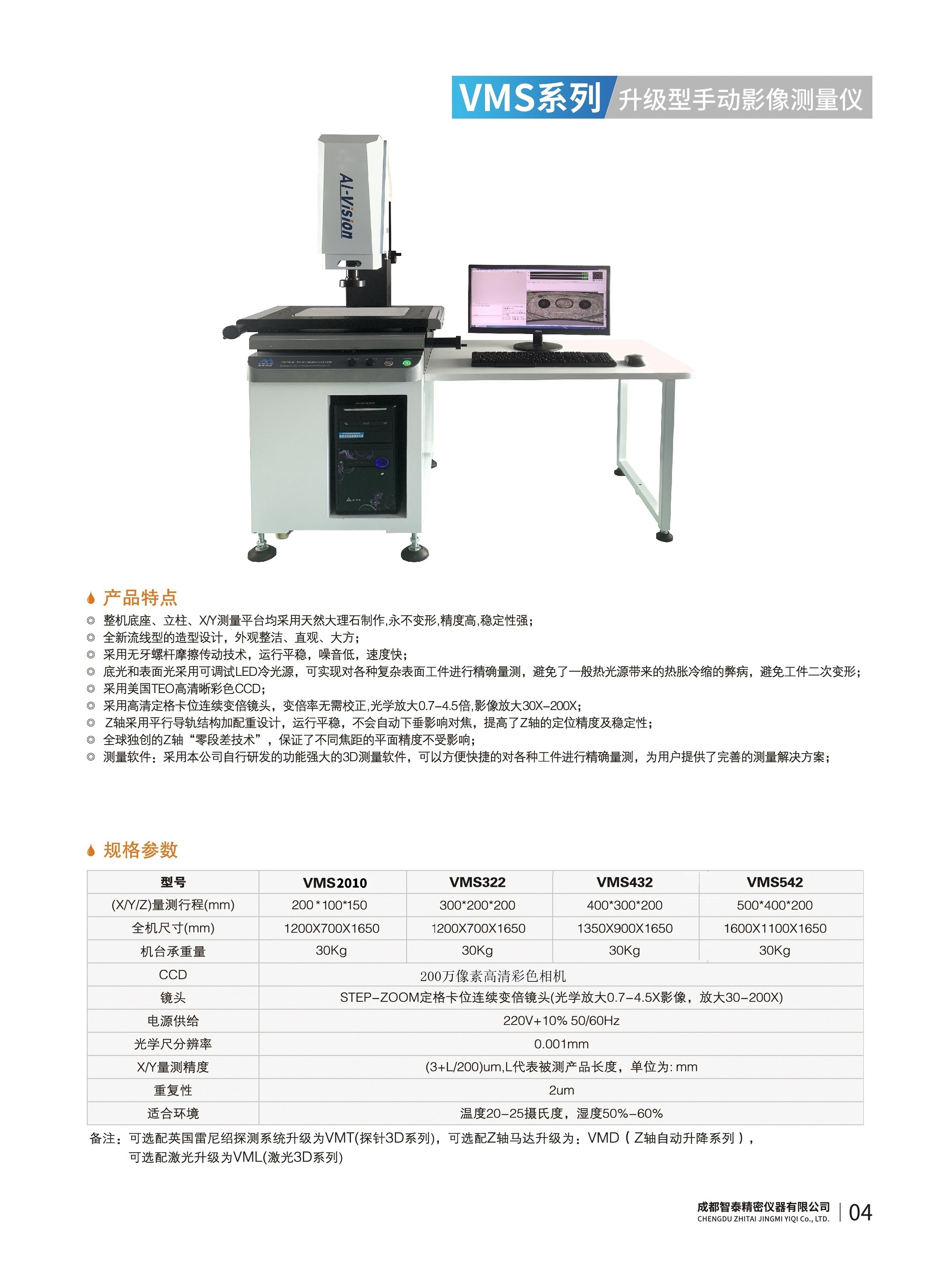 成都智泰精密儀器有限公司專注于精密測量儀器,人工智能,智能制造領(lǐng)域,專業(yè)從事智能視覺自動化檢測解決方案的貿(mào)易型企業(yè)。公司成立于2011年,位于天府之國成都,現(xiàn)有行業(yè)精英十余人,辦公倉儲面積200余平米。 公司主要產(chǎn)品為精密光學影像測量儀,精密輪廓形狀測量儀,精密機器人定位系統(tǒng),精密智能視覺尺寸檢測儀器,精密表面缺陷智能檢測設(shè)備,工業(yè)工程特種機器人。 公司憑借過硬的技術(shù)實力和產(chǎn)品方案,率先進入智能視覺自動化檢測領(lǐng)域,推廣以精密智能視覺自動化檢測為基礎(chǔ)的機器人自動化應用,公司不斷整合上下游的資源,擁有巨大的全產(chǎn)業(yè)鏈優(yōu)勢??蛻羧后w覆蓋了我國精密制造業(yè)的多數(shù)領(lǐng)域,包括航空、航天、軍工、汽車、新能源、光伏、食品,精密電子、精密機械、模具、PCB、LCD、五金、塑膠、醫(yī)療、教育、計量及科研院所等行業(yè)。 公司創(chuàng)新的產(chǎn)品能滿足生產(chǎn)與制造行業(yè)客戶的要求,訓練有素的工程師能及時提供多種技術(shù)服務(wù),如解...
